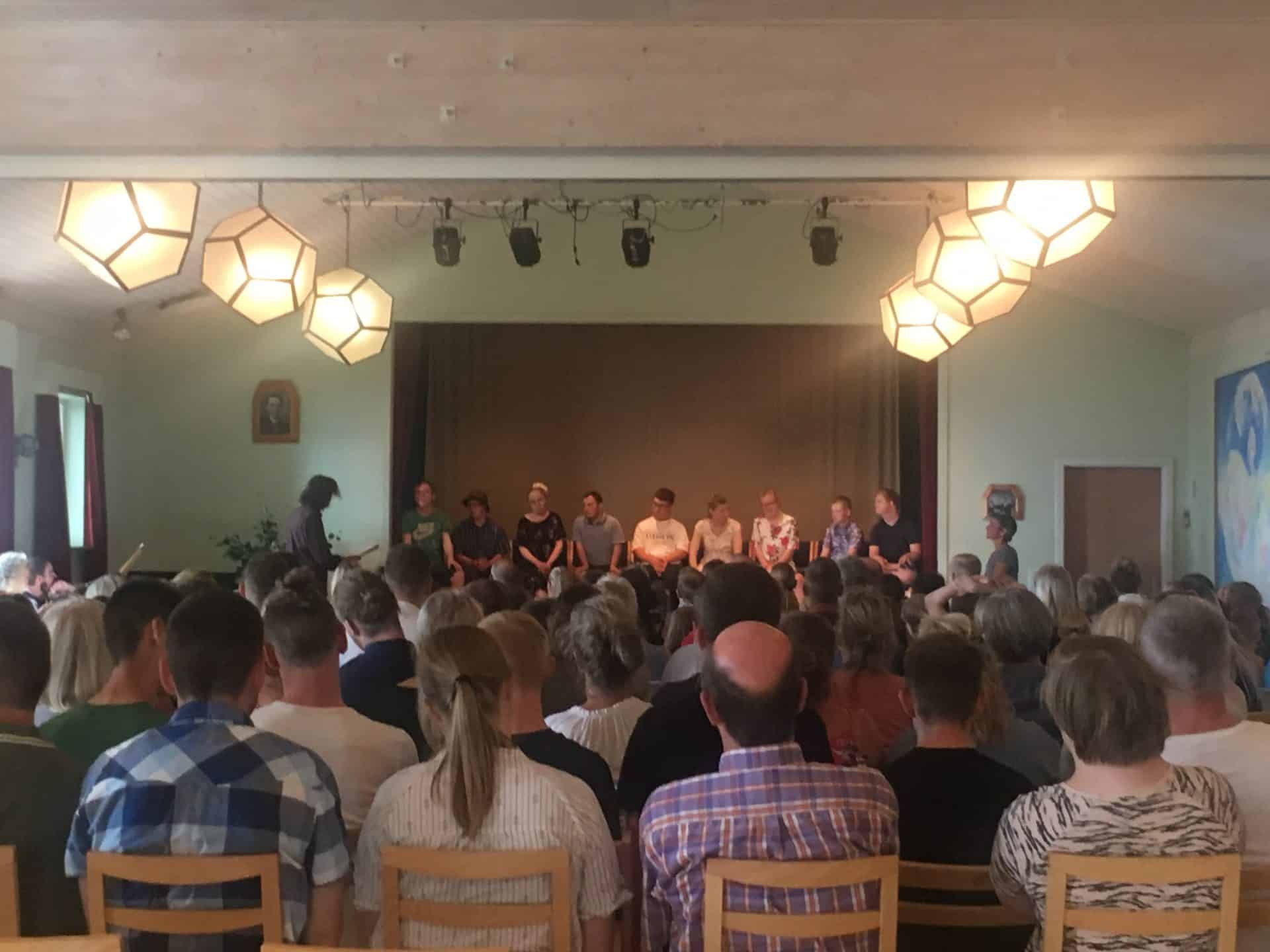 Den festlige højtidelighed fandt sted i Marjattas sal, hvor der blev sunget og holdt taler for de fine afgangselever. Hver elev blev hyldet med en personlig tale fra deres lærere, Michael og Gertie, efterfulgt af overrækkelsen af en smuk blomsterkrans samt en gave.