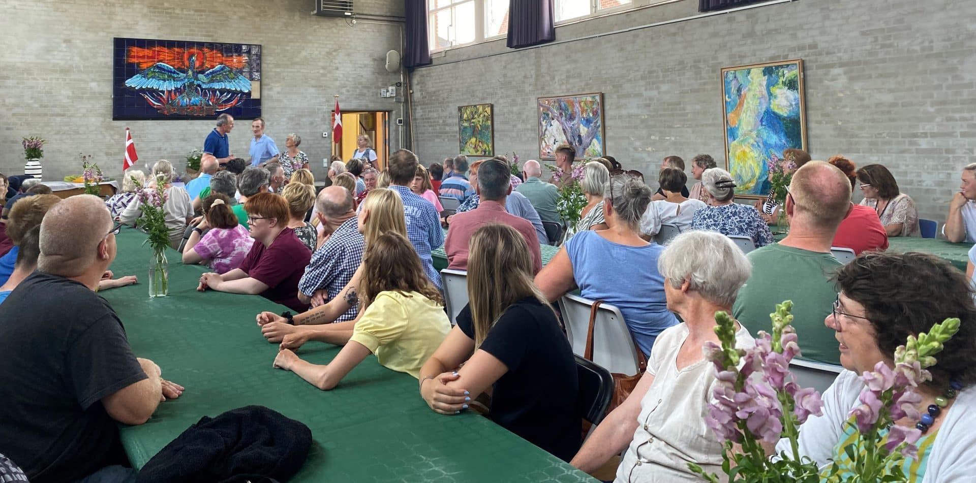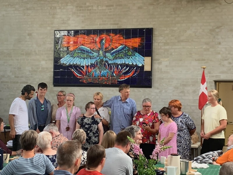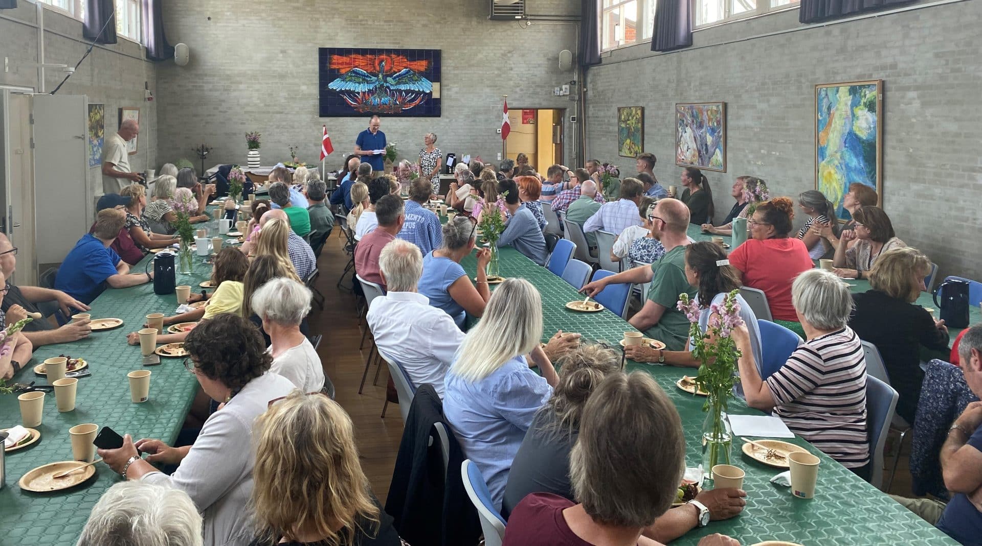 Mange var mødt op på Sofiegården for at fejre og tage afsked med Anne-Grethe, som her får overagt en fin Grethe Bagge akvarel af leder Bernhard Schmitz.