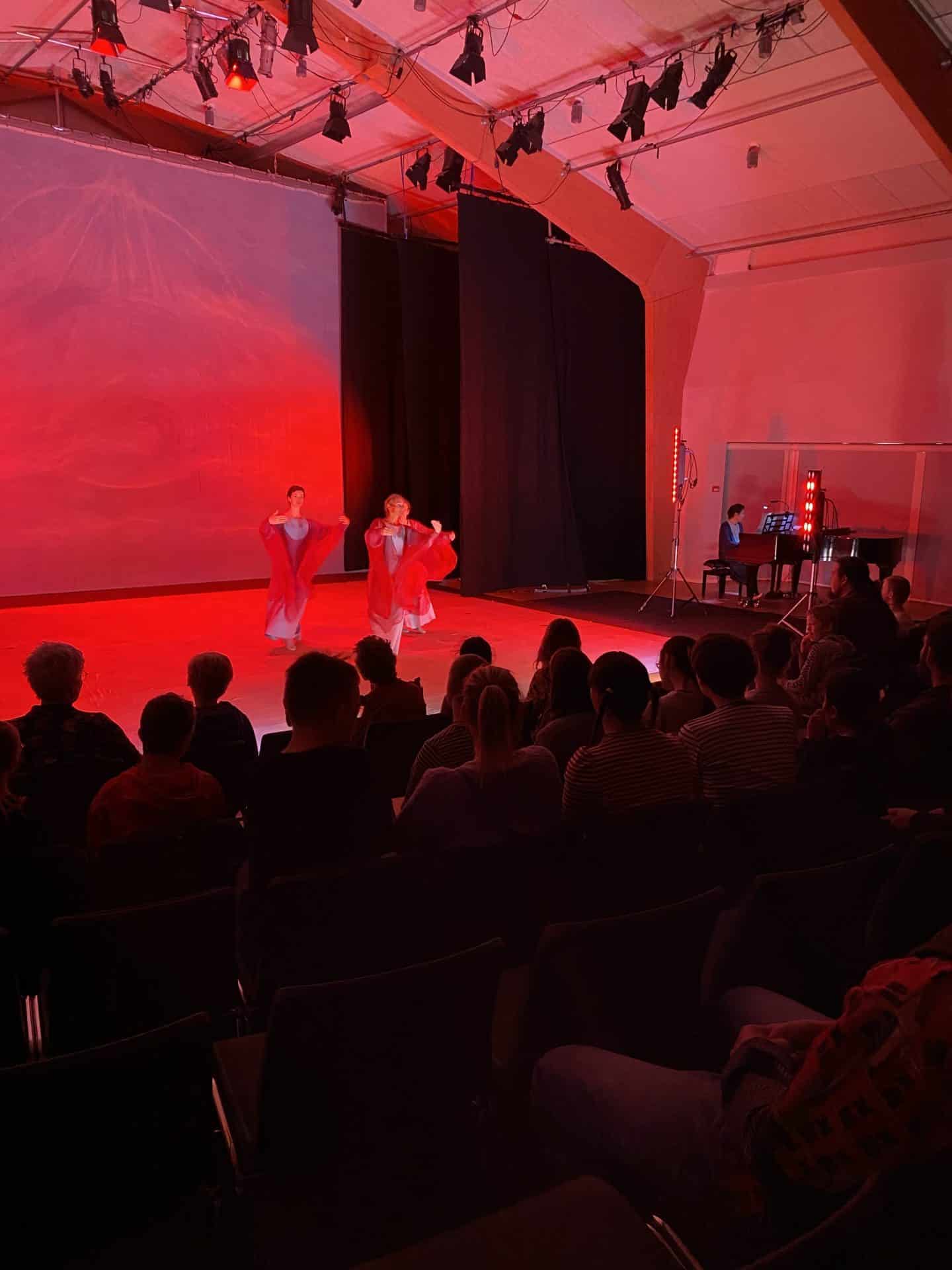 Det var dejligt at overvære de to eurytmiforestillinger fra Schweiz. ”Lichteurythmie” der betyder ”Lys-eurytmi”.