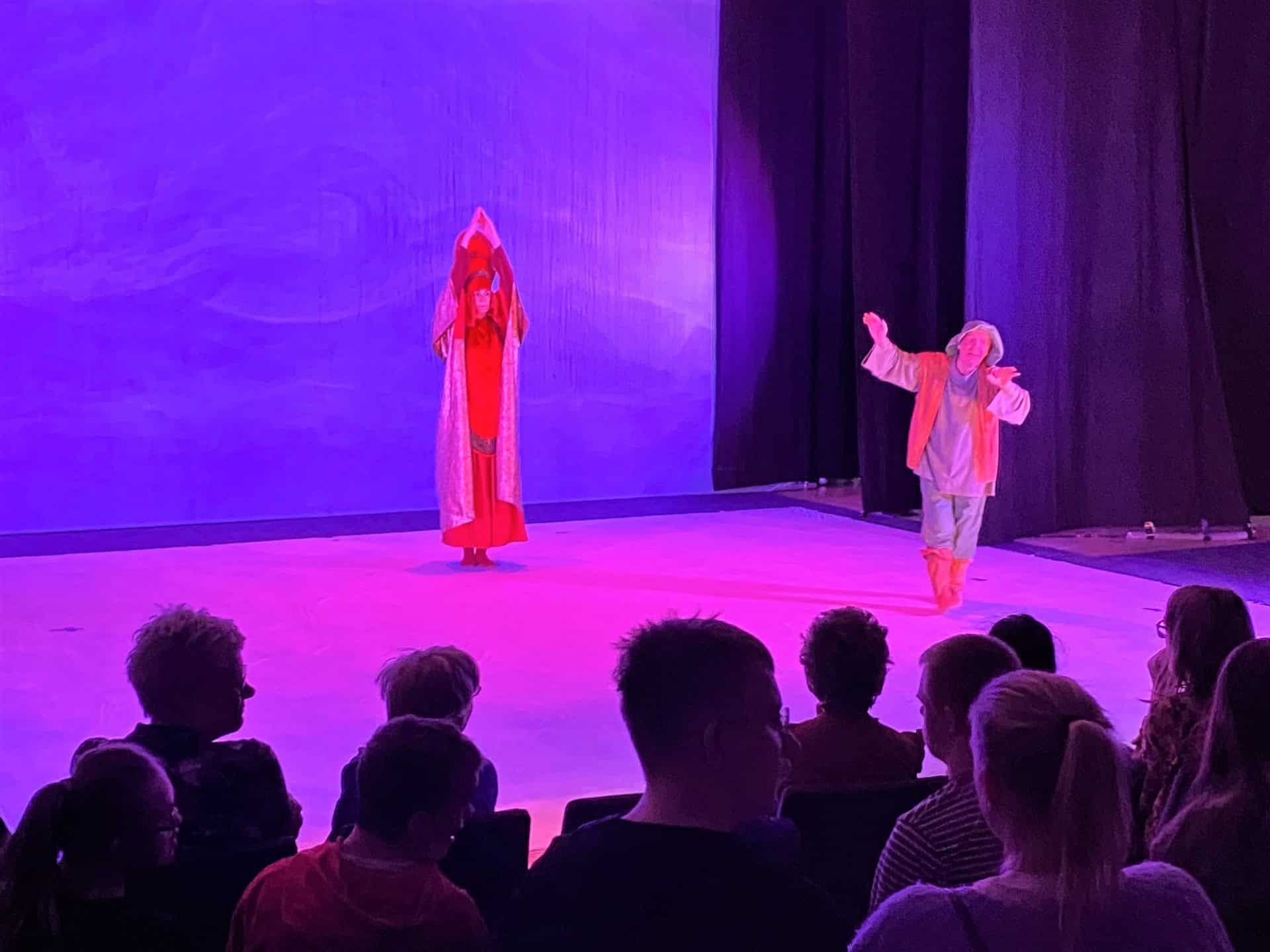 Bevægelse, sprog og musik væves sammen med spændende farvestemninger, når der vises eventyr af Grimm for alle aldre og scener fra Dantes ”Guddommelige komedie” for det voksne publikum. Fremført så fint og med et fantastisk lys og farver.