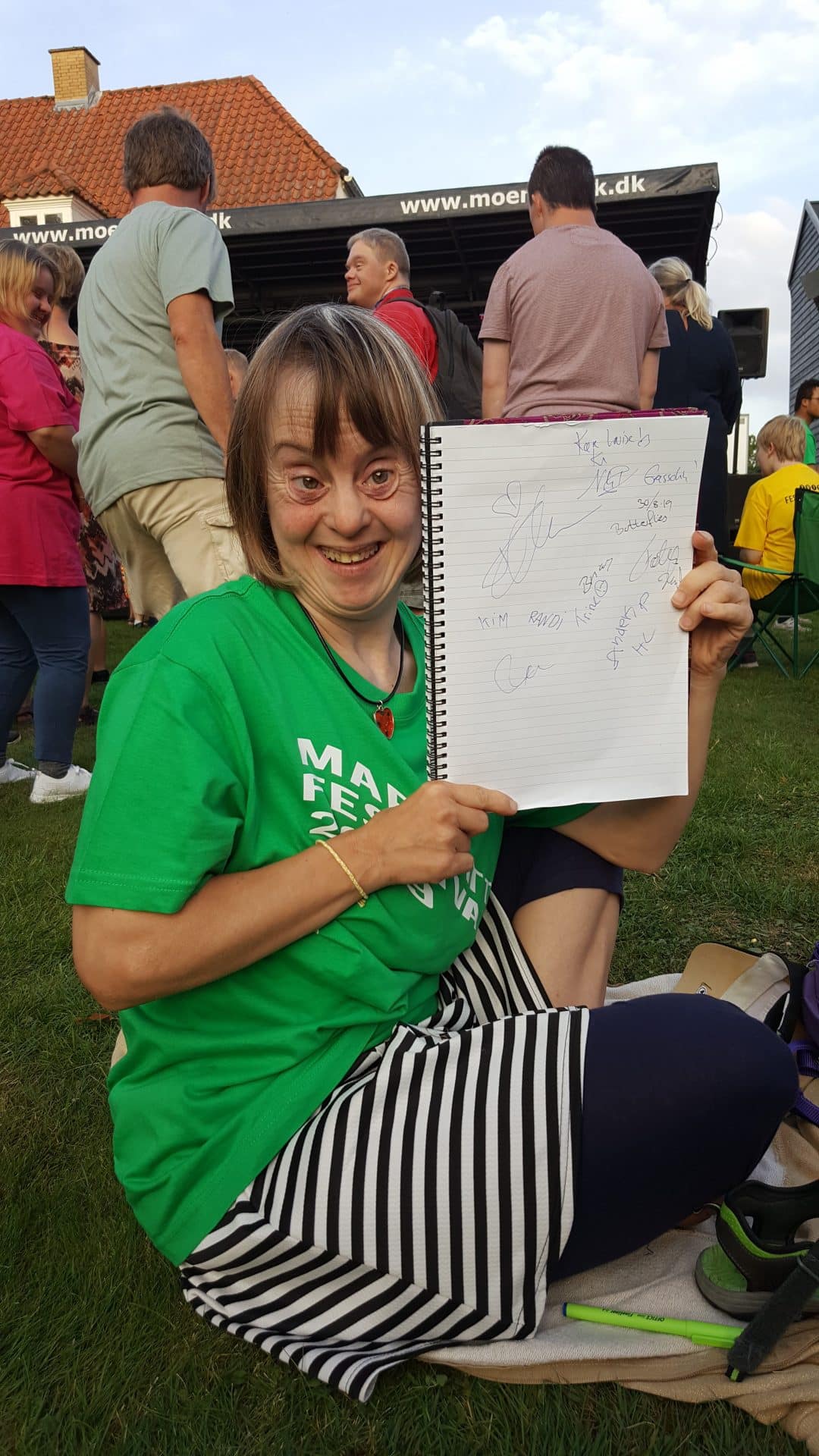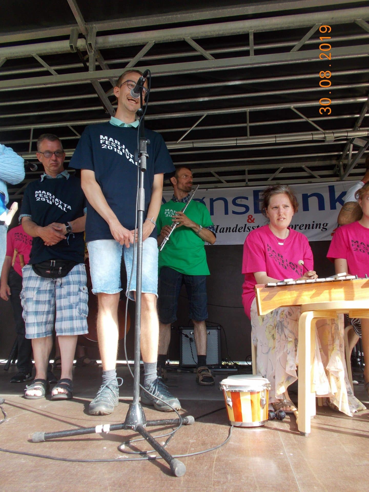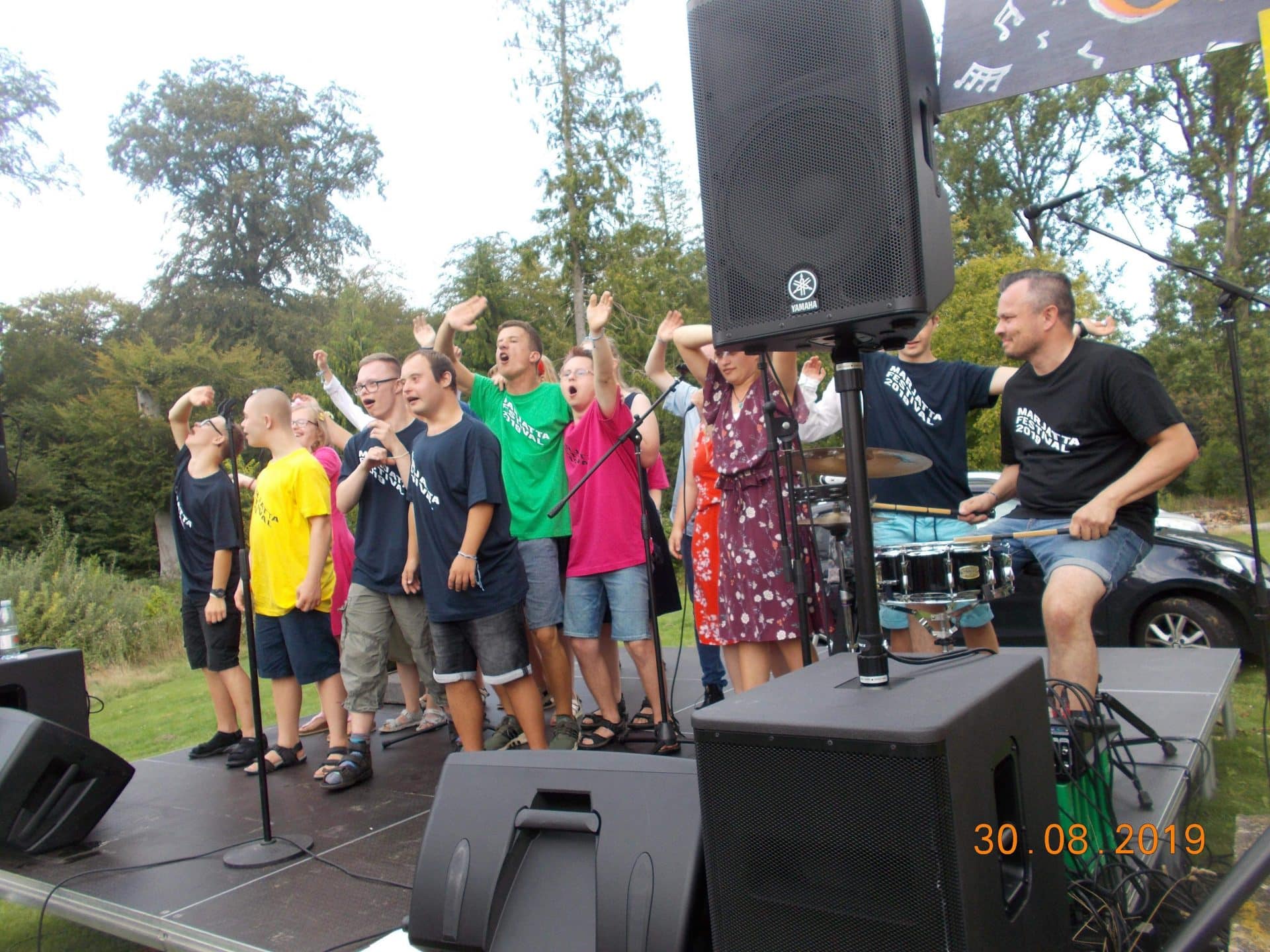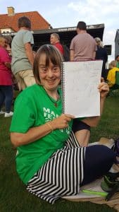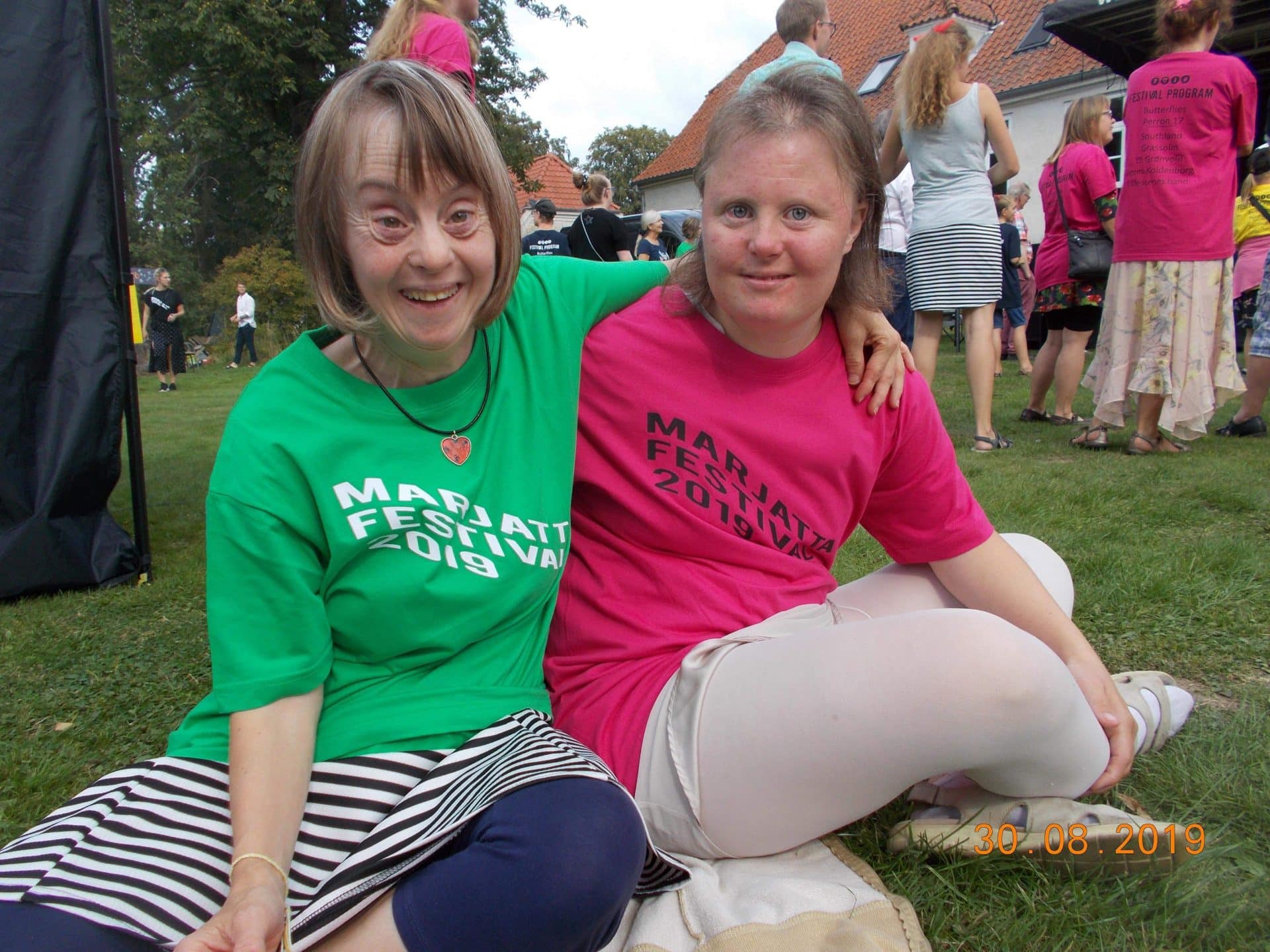 D.30.8.19 tog Gyldenkam afsted til Marjattafestivalen. Det var første gang festivalen blev afholdt, så ingen vidste hvad de gik ind til og de fleste var da også lidt betænksomme ved at melde sig til. Men, da vi først var på Bredeshave var glæden stor. Billetten kunne man bytte til et festivalarmbånd og en festival t-shirt. Overalt i haven, på denne varme sensommerdag, sås glade mennesker i Marjattafestival-t-shirts i alverdens farver. Musikken foregik på to scener, hvor der på skift var musik af enten udefrakommende bands, så som Butterflies og Grassolin, og bands fra Ristolahaven. ALLE var i virkelig godt humør og der blev danset og synget med på de kendte Kim Larsen sange. I haven var en bod hvor man kunne få sprayet håret, hvilket mange benyttede sig af – selv Marjattas forstander Bernhard havde blåt hår. I mad- og drikkeboderne kunne man købe hotdogs, burgere, popcorn, kaffe og kage, sodavand, alkoholfri øl og andet lækkert. Der skulle jo tankes op en gang i mellem, når man danser så meget. Koncerterne startede kl. 14 og sluttede kl. 20. Derefter kom en DJ for at spille til kl. 22. Alle fra Gyldenkam var dog godt trætte kl. 20 og kørte hjem. Hvis der bliver festival igen, vil ingen være betænkelige med at bestille billetter. Det var en vildt god, hyggelig og festlig oplevelse.
