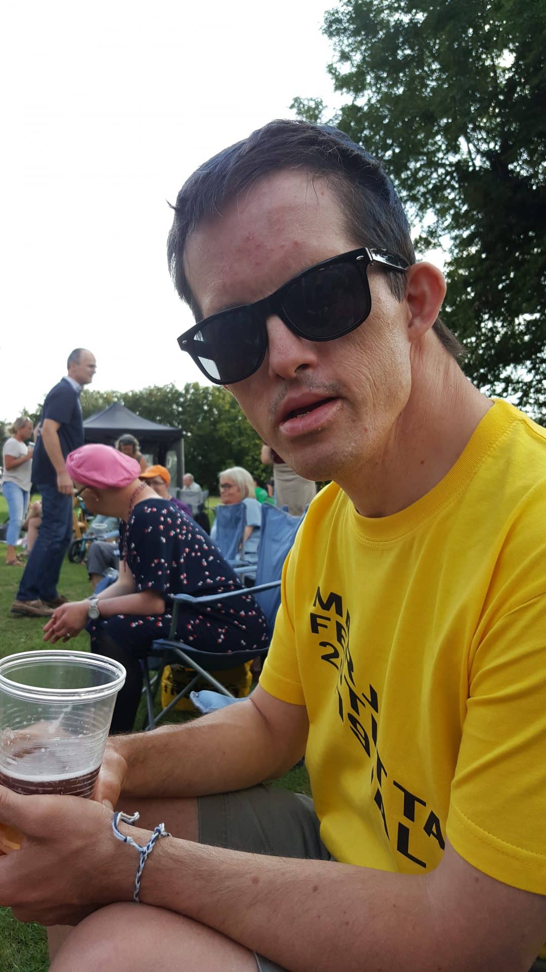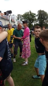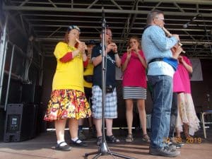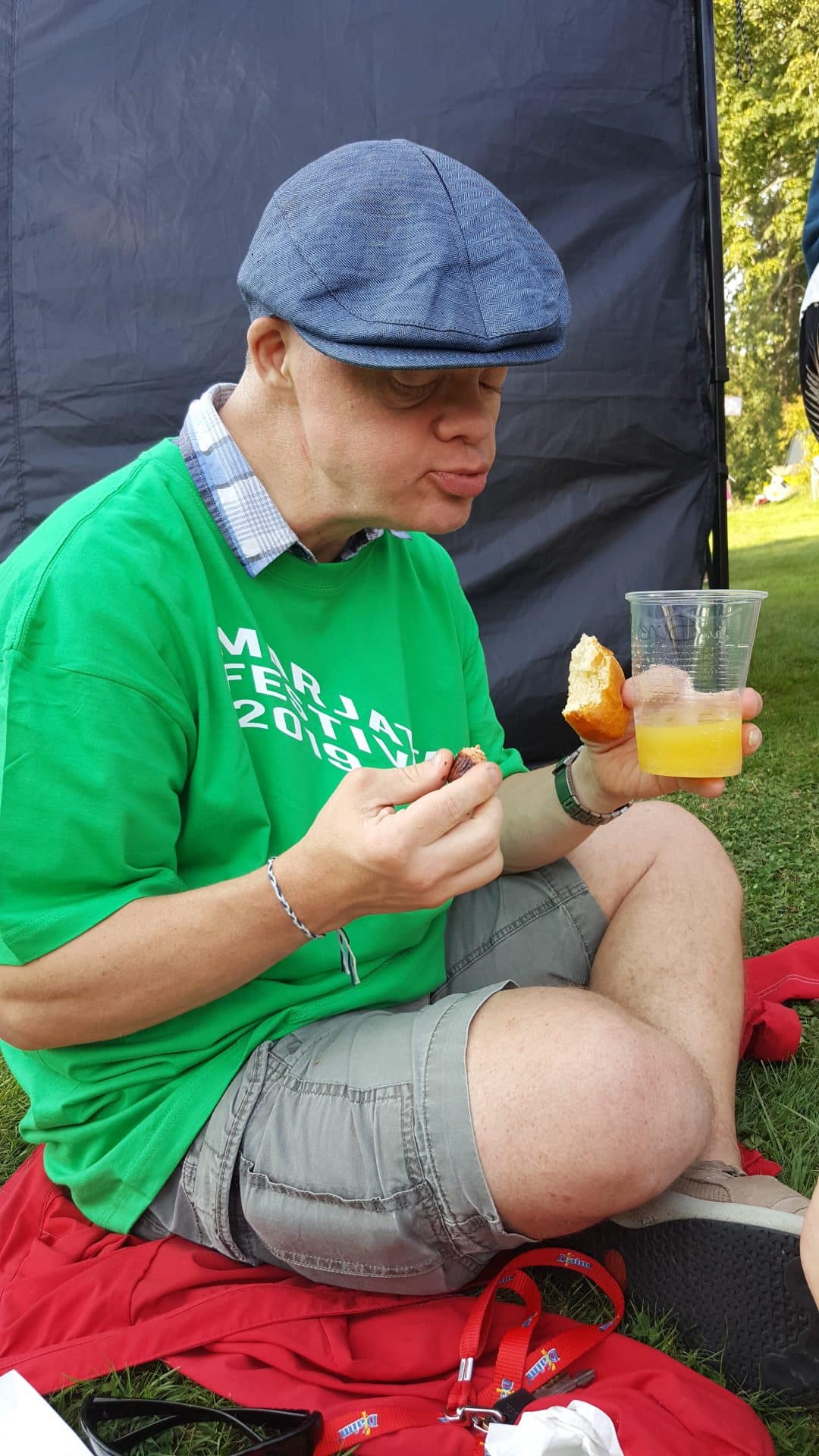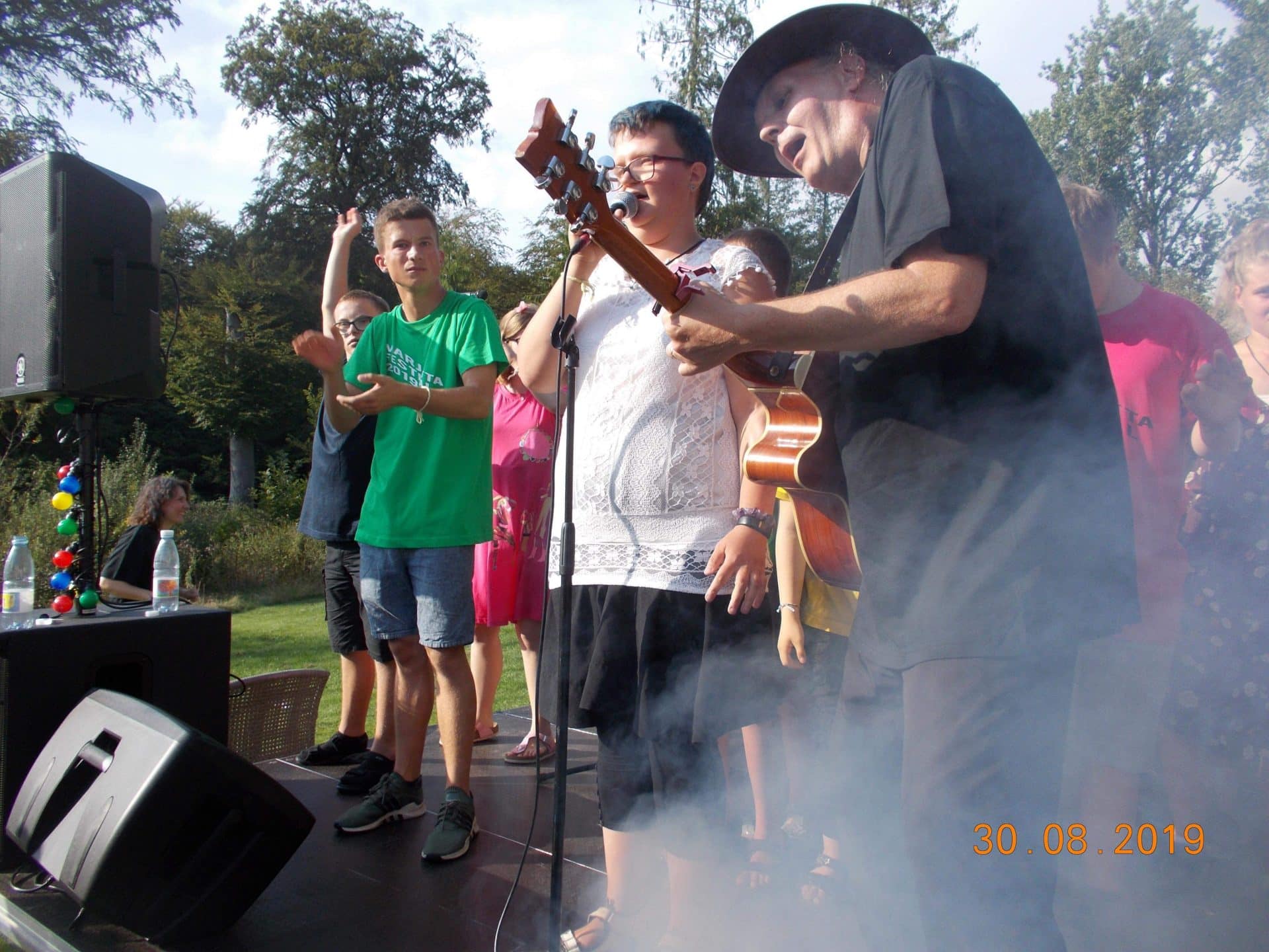 D.30.8.19 tog Gyldenkam afsted til Marjattafestivalen. Det var første gang festivalen blev afholdt, så ingen vidste hvad de gik ind til og de fleste var da også lidt betænksomme ved at melde sig til. Men, da vi først var på Bredeshave var glæden stor. Billetten kunne man bytte til et festivalarmbånd og en festival t-shirt. Overalt i haven, på denne varme sensommerdag, sås glade mennesker i Marjattafestival-t-shirts i alverdens farver. Musikken foregik på to scener, hvor der på skift var musik af enten udefrakommende bands, så som Butterflies og Grassolin, og bands fra Ristolahaven. ALLE var i virkelig godt humør og der blev danset og synget med på de kendte Kim Larsen sange. I haven var en bod hvor man kunne få sprayet håret, hvilket mange benyttede sig af – selv Marjattas forstander Bernhard havde blåt hår. I mad- og drikkeboderne kunne man købe hotdogs, burgere, popcorn, kaffe og kage, sodavand, alkoholfri øl og andet lækkert. Der skulle jo tankes op en gang i mellem, når man danser så meget. Koncerterne startede kl. 14 og sluttede kl. 20. Derefter kom en DJ for at spille til kl. 22. Alle fra Gyldenkam var dog godt trætte kl. 20 og kørte hjem. Hvis der bliver festival igen, vil ingen være betænkelige med at bestille billetter. Det var en vildt god, hyggelig og festlig oplevelse.