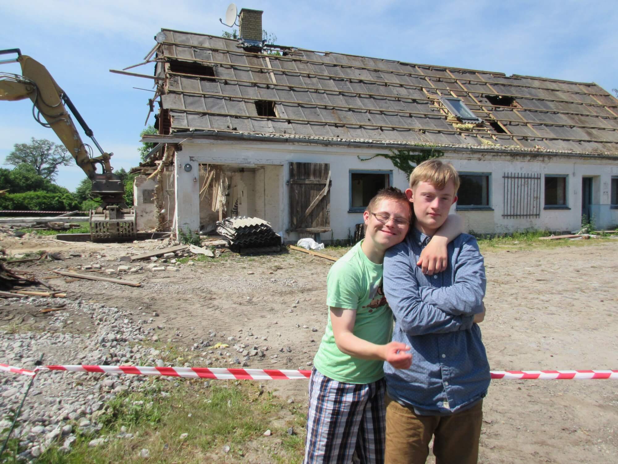 Det tiltrækker selvfølgelig opmærksomhed, og flere begejstrede tilskuere er mødt op for at se huset vælte.