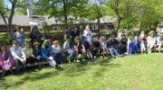 Det er et festligt syn at se de mange kranse på hovederne og glade ansigter der koncentrerer sig om at flette de mange meter silkebånd.
